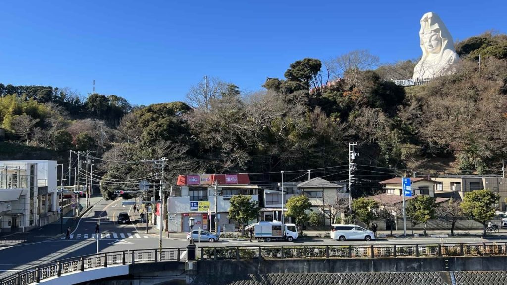 東口の喧騒とは打って変わり、巨大な大船観音が見守る西口エリアは、緑豊かで落ち着いた雰囲気が漂います。