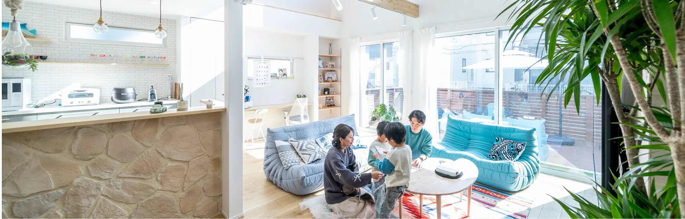 大石様ご夫妻は、以前は辻堂のマンションにお住まいでしたが、下のお子様が誕生されることを機に、住み替えを検討されました。都内から湘南へ移住され、海の近くでの暮らしを体感する中で、お子様たちが家の中でも走り回れるような、より広々とした住環境を求められたとのこと。